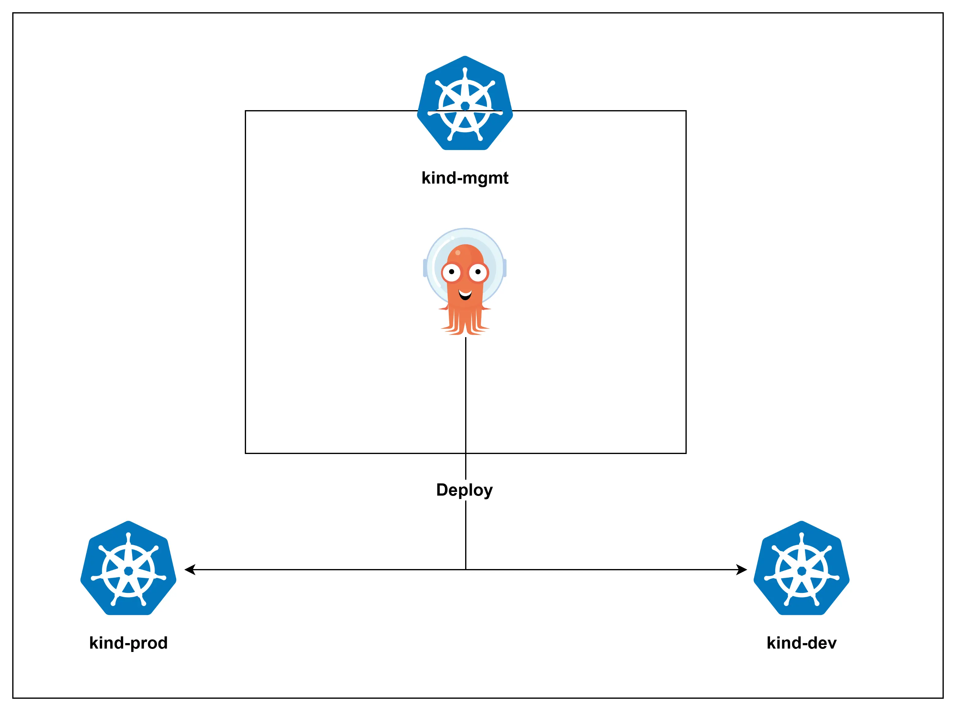 이번 포스팅에서는 로컬 환경에서 kind를 사용하여 관리용(Management), 운영용(Production), 개발용(Development) 클러스터를 구축하고, Argo CD를 이용해 중앙에서 멀티 클러스터에 애플리케이션을 배포하는 과정을 정리해보겠습니다.