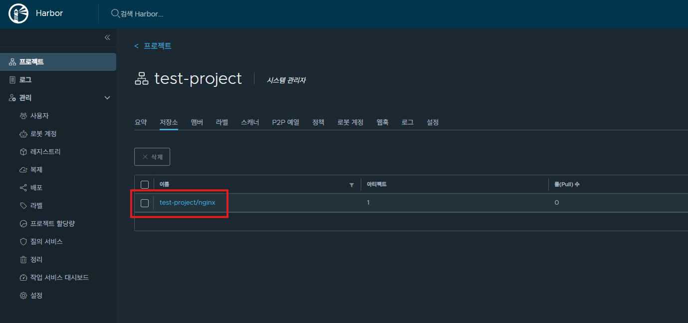 {your-harbor-domain}/test-project/nginx latest 7f553e8bbc89 5 days ago 192MB