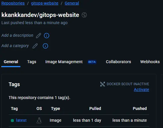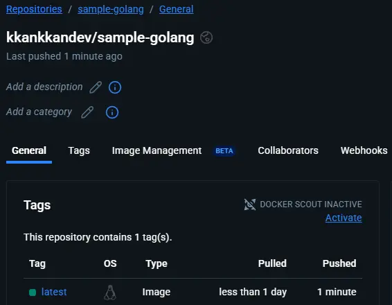 step-build-and-push INFO[0050] Pushing image to docker.io/gasida/sample-golang:latest